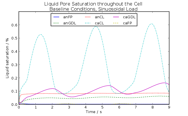 Figure 9: Liquid pore saturation under sinusoidal, reversing
