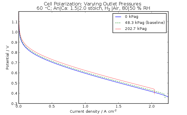 Figure 2: Polarization curves of the cell with various outlet