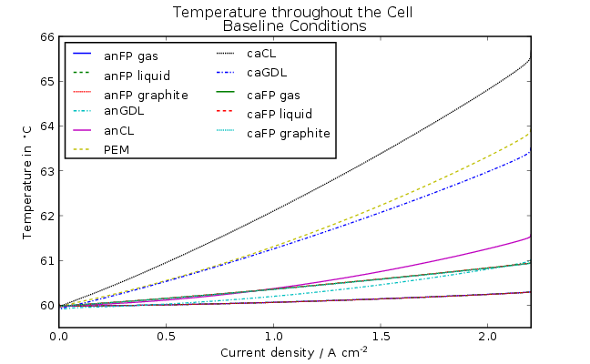 Figure 4: Temperature throughout the cell during the baseline