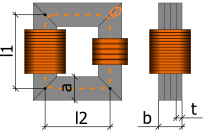 secondary winding and a magnetic core. The core is modeled with