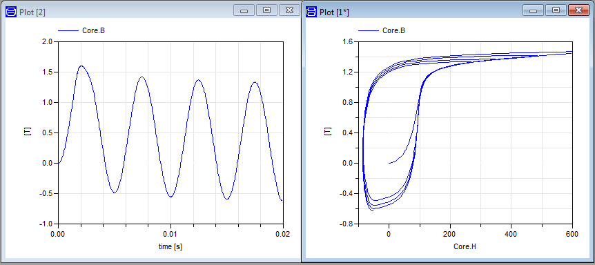 Fig. 1: Results Core.B(t) and Core.B(H) of the magnetic Core.