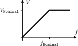the voltage is linear dependent (VNominal/fNominal) on