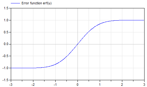 function erf extends Modelica.Icons.Function; input Real u "Input argument"; output Real y "= 2/sqrt(pi)*Integral_0_u exp(-t^2)*dt"; end erf;