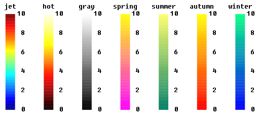 This package contains functions that return color maps. A color map is a Real[:,3] array where every row represents a color. Currently the following color maps are returned from the respective function: