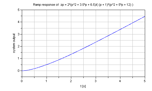 ZerosAndPoles p = Modelica_LinearSystems2.ZerosAndPoles.p(); Modelica_LinearSystems2.ZerosAndPoles zp =(2*p^2 + 7*p + 13)/(p + 1)/(p^2 + 5*p + 12); algorithm Modelica_LinearSystems2.ZerosAndPoles.Plot.ramp(zp) // gives: