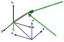 The force and torque are by default visualized as an arrow (force) and as a double arrow (torque) acting at the connector to which they are connected. The diameters and colors of the arrows are fixed and can be defined via parameters forceDiameter, torqueDiameter, forceColor and torqueColor. The arrows point in the directions defined by the inPort.signal signals. The lengths of the arrows are proportional to the length of the force and torque vectors, respectively, using parameters N_to_m and Nm_to_m as scaling factors. For example, if N_to_m = 100 N/m, then a force of 350 N is displayed as an arrow of length 3.5 m.