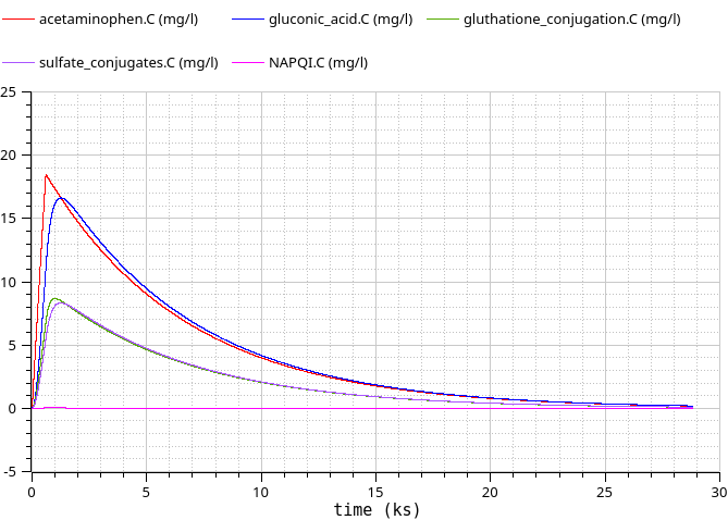 Simulation of paracetamol and it's metabolites pharmacokinetics 8h