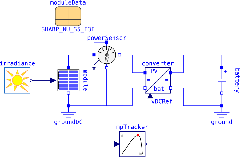 Modelica library for the simulation of photo voltaic cells, modules and plants. The library provides: