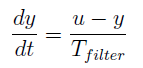 where u and y are the input and output signals, respectively. In this particular case, u is the mass variation calculated with the equation of state and y is the filtered mass derivative. This filter therefore acts as ”mass damper” and avoids transmitting abrupt variations of the flow rate due the density derivative discontinuity. The filtered mass accumulation in each cell is written: