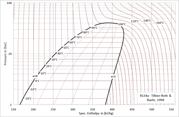 This function calculates the Kelvin temperature of R134a from the state record (e.g., use setState_phX function for input). The temperature is modelled by the fundamental equation of state of Tillner-Roth and Baehr (1994).