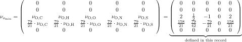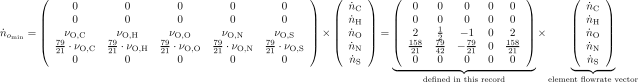 This record contains a matrix, defining the Oxygen demand for full combustion of the elements C, H, O, N, S.