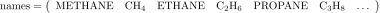 The molecule names are stored in the "names" vector as