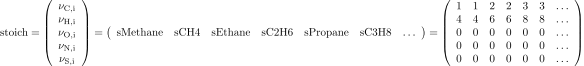 This record contains a matrix, defining the stoichiometric