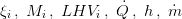 Mass fraction, molar mass, lower heating value, heat flow out of