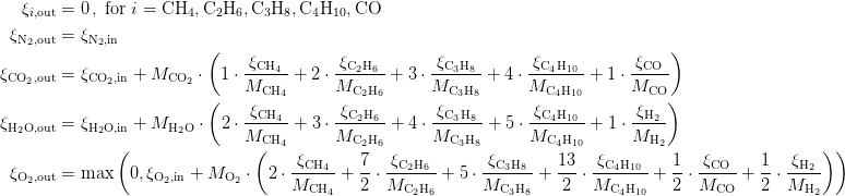 The outflowing mass fractions are determined using the stochiometry of the combustion reactions: