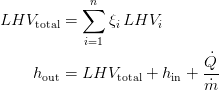 The lower heating value of the mixture is calculated using the LHV of the components and with this and the outflowing heat flow, the outflowing specific enthalpy is calculated: