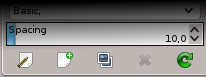 The “Brushes” dialog is used to select a brush, for use with painting tools: see the Brushes section for basic information on brushes and how they are used in GIMP. The dialog also gives you access to several functions for manipulating brushes. You can select a brush by clicking on it in the list: it will then be shown in the Brush/Pattern/Gradient area of the Toolbox. GIMP comes now with 56 brushes, different from each other, because the size, the ratio and the angle of every brush can be set in the tool options dialog. You can also create custom brushes using the Brush Editor, or by saving images in a special brush file format.