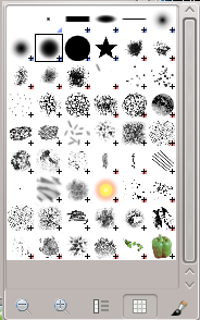 In the center a grid view of all available brushes appears, with the currently selected one outlined.
