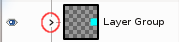When a layer group is not empty, a small “>” icon appears. By clicking on it, you can fold/unfold the layer list.