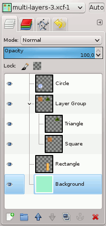 To add a new layer to the current layer group, click on the at the bottom of the layer dialog, or use the command in the image menu.