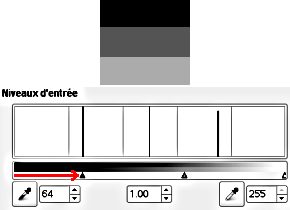 Three triangles as sliders: one black for dark tones (Shadows), one grey for midtones (Gamma), one white for light (Highlights) tones.