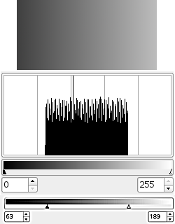 The original image is a RGB gradient from black (0;0;0) to white (255;255;255). Output Levels has no histogram; here, we used → → .