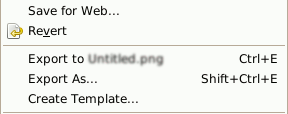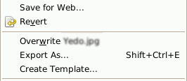 If you have loaded a non-XCF file, a new item appears in File menu, allowing you to to export file in the same format, overwriting the original file.