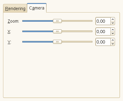 In the main window, you can set Rendering and Camera parameters. The first three parameters in the Render display are Brightness, Contrast and Gamma. The result of these options is visible in the Preview window, but it's generally better to stick to the default values, and correct the rendered image later with Image/Colors.