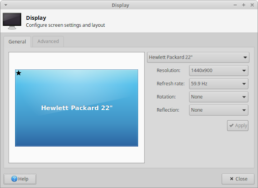 On the General tab, you can change the screen’s resolution, refresh rate, rotation and reflection in the various drop-down lists. Click the Apply button to try out the changes and a confirmation dialog will appear to let you confirm or reject the changes. The previous configuration will be restored if you don’t confirm or reject the changes within 10 seconds.