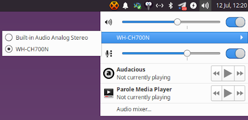 It is possible to adjust the output volume by using the mouse scrollwheel above the sound plugin icon. To customize whether multimedia keys are enabled, if a notification appears when the output volume is changed, and which media players will appear in the plugin popup window, right-click on the sound plugin.