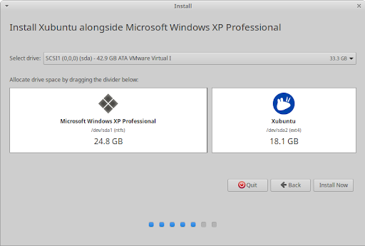 If you choose to install Xubuntu alongside another existing operating system, you will be given the option to adjust how much hard disk space Xubuntu will use after you click the button.