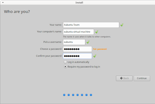 At the Who are you? screen, once you enter your name, a computer name and username will be automatically suggested. You can change both as you prefer. The computer name, aka hostname, is the name your computer will have when it appears on the network, while the username will be your login and account name.